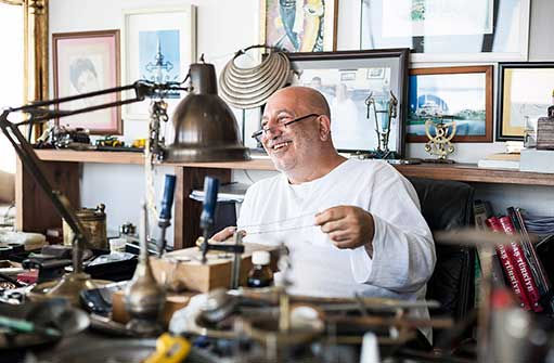10 yaşındayken çırak olarak girdiği Kapalıçarşı’nın büyülü dünyasındaki yolculuğunu 50 yıla yakın bir süredir sürdürüyor. Ufkunu genişleten ve hayal gücünü özgürce kullanmasına olanak veren tasarım dünyasının o büyülü havasını solumaya devam ediyor. Aslına bakarsanız onu bir mücevher ustası olarak tanımlamak çok da doğru olmaz. Avedis Kendir yalnızca altına şekil veren, tasarımlarında yalnızca değerli taşları kullanan bir tasarımcı değil. Doğada olan tüm materyalleri kullanıp, bunların hepsini bir araya getirip hayat vermeyi çok seviyor. Öte yandan değersiz bir madeni değerli hale getirmek de ona heyecan veriyor. Ona göre ustaca işlenebilen bütün madenleri özgün bir değere kavuşturabilmek mümkün.