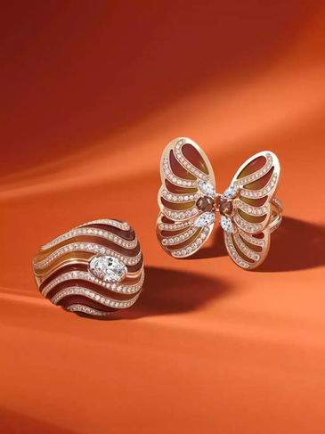 Renk ve hareketle dolu Sonbahar serisinin canlı parçaları, düşen yaprakların kızıl tonlarını ve yaz sıcaklığının son kalıntılarını yansıtmak için koyu kırmızıdan altın bronza akan sanatsal bir ombré özelliğine sahiptir. Grand Feu emaye parçalar, yaklaşan kış mevsiminin buz gibi serinliğini simgeleyen elmas setli beyaz altının zarif hatlarını çevreliyor. Her bir tasarım, emaye ve pırlanta unsurların birlikte veya ayrı ayrı takılabilmesi için ustalıkla hazırlanmış olup, avangart bir sanat eserinden klasik güzellikte bir mücevhere dönüşen bir Yüksek Mücevher metamorfozu sunmaktadır.
