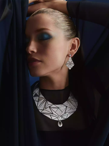 Beyaz altın ve beyaz pırlantalardan oluşan olağanüstü güzellikteki kreasyonlar, kışın saflığını ve buzul ihtişamını çağrıştırıyor. Çarpıcı pırlantalar ve çeşitli pırlanta teknikleri, buzun üzerinde dans ederek güneş ışığını çağrıştıran göz kamaştırıcı bir ışık oyunu yaratıyor. Kış setinde olağanüstü işçilik, vücut hatlarını saran ve takan kişiyle senkronize bir şekilde hareket eden parçalara şehvetli bir akışkanlık kazandırıyor.